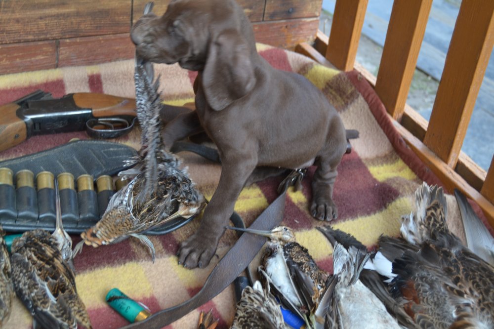 Предлагаем отличный помет от достойных родителей! (Немецкая короткошерстная легавая) 02.08.2017г.плановая вязка. Мать: Элеонора ,Челябинская обл.,г .Коркино ,03.01.2014г., владелец Лебедев А.А ВПКОС 4639/17 Племенной класс – 1. Оценка экстерьера-ОТЛИЧНО.МЗМ Полевые дипломы: 3Д-III вод.дичь.,Д-II кров.след.,Д-III пол.дичь.,Д-III пол.дичь(состяз.) Отец: п.ч.ч. ATILLA OF NASLUKA;(импорт Болгария),г.Новосибирск , владелец Кольяков Р.Г. ВПКОС 4314/15 РКФ №3971350 Племенной класс – ЭЛИТА. Полевой Чемпион Серебряный призёр состязаний по вольерному кабану Юный чемпион России Оценка экстерьера: отлично; БЗМ Полевые дипломы:1-II ,2-III перепел.,2-III дупель., 1-II водоплавающая., 1-I,1-II вольерный барсук, 1-II, 1-III вольерный кабан Документы на каждого щенка в наличии Цена 25 000