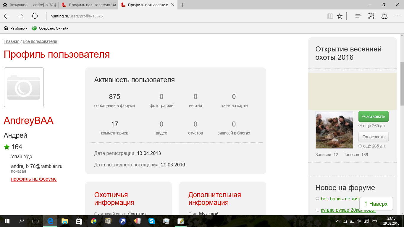 Ты напиши о себе побольше, сам откуда, где бывал, какие места знаешь, где тайгу "топтал", оружие какое в арсенале, стаж какой, и т.д.,, и т.п.???