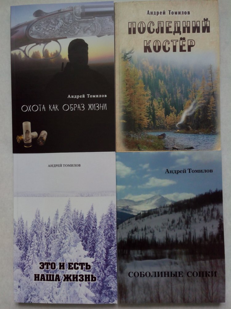 Друзья! А ведь скоро Новый Год! Не пора ли подумать о подарке для друга? В прежние времена КНИГА в подарок считалось хорошим тоном! А если подарить все 4 сборника, это действительно будет прекрасный подарок. Книги: "Охота как образ жизни", "Последний костер", "Это и есть наша жизнь", "Соболиные сопки". Каждая книга с ПЕРЕСЫЛКОЙ по России стоит 450 руб. В книгах увлекательные истории о людях, которые посвятили свою жизнь ТАЙГЕ, о таежных ТРАГЕДИЯХ. О настоящих ПРОМЫСЛОВИКАХ. О судьбах этих ОТВАЖНЫХ людей.
