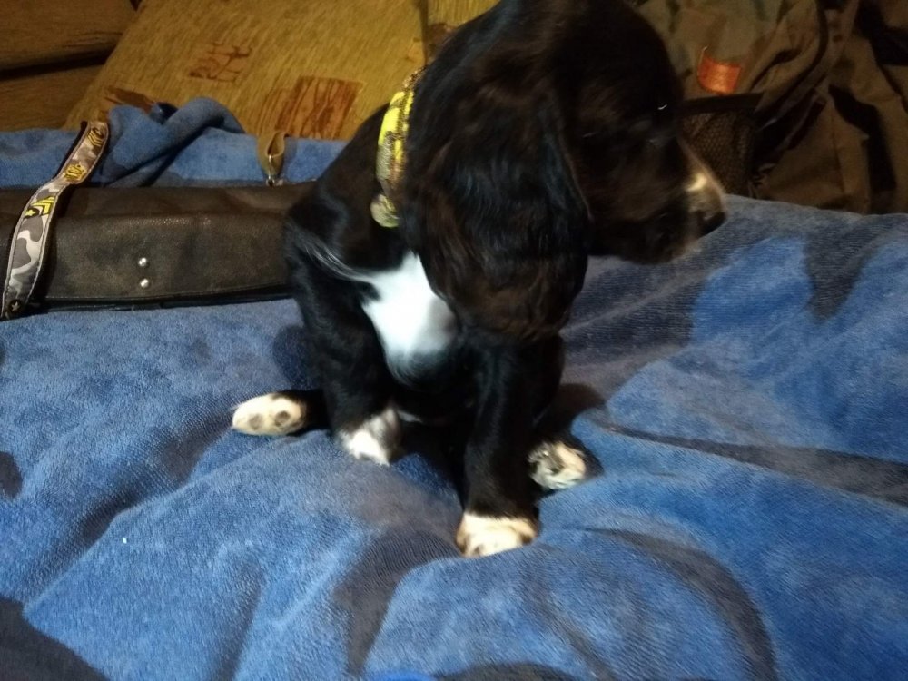 Щенки русского охотничьего спаниеля. 9 щенков: 6 кобелей (2 черно-пегих и 4 черных)/3 суки (черно-пегая и 2 черных) Д.р—10'10'17 Нахождение щенков — Саратов. мать АЙНА, 25.03.12 г.р., ВПКОС — 5998/17; окрас — рыже-пегий Плем.класс : первый ДИПЛОМЫ: IIпер, IIIпер отец ПЧ БАКС 05.06.12 г.р., -ВПКОС — 5751/15; окрас — черный Оценка экстерьера отлично Титулы: П Ч XII Всероссийских состязаний . Дипломы: Iпер, IIу, IIф, 3- IIIпер Хвосты купированы. Актировку прошли. Вет паспорт, прививка по возрасту. Документы РОРС. Свободны 2 кобеля и 2 суки. 13000 89271258222