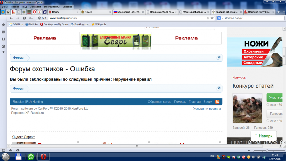 1.Сегодня вошел под своим никнеймом и отписал для Мачелло 12 июля 2016, 14:15 в авторском рассказе https://www.hunting.ru/blogs/view/123596/#comment564389 и буквально через 15 минут не смог войти в форум, при чем никаких оповещений на нарушения в почту не было, более того мною не было нарушений на протяжении длительного времени и "зеленая лампочка" не загоралась хоть на какой либо процент.