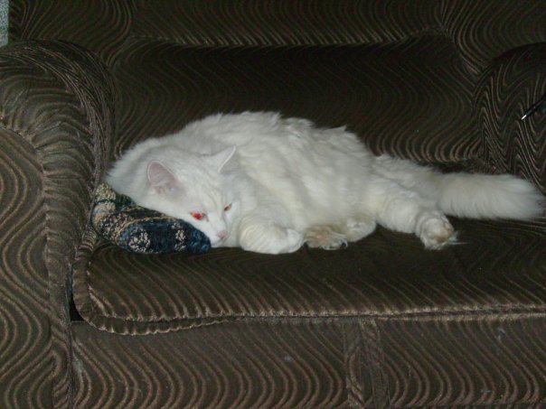 Не, у меня молочное на дух не переносил. Из рыбы только окунь и то только вареный. Привередливый был. Но зато соседского той-терьера гнобил только в путь Спит где нибудь, сигарету покажешь ему, или позовешь: Жопа с ушами, курить! Он уже у входной двери. Так и курили втроем: я, отец и кот. Он так на корм не реагировал, как на курево
