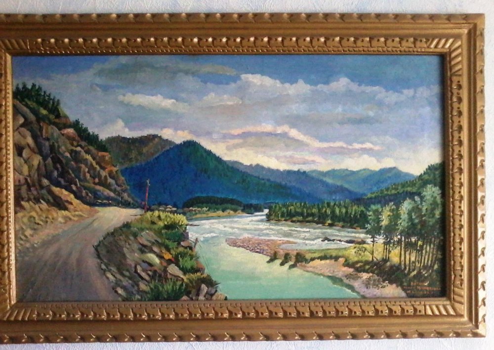 300000 923-795-61-семнадцать Михаил Сергеевич Агеев является членом Союза художников России, Заслуженным художником РСФСР , Народным художником. Картина с громким названием «Алтай район Манжерока» написана маслом на холсте, размеры картины с рамкой 117 х 75 см, без рамки 99 х 56 см. Редкая картина, единственная работа художника, сделанная на Алтае во время прохождения международного фестиваля советско-монгольского дружбы «Алтай-66» который открылся 18 августа 1966 года, в с. Манжерок, который ознаменовал подписанный в том же году в Улан-Баторе новый советско-монгольский Договор о дружбе, сотрудничестве и взаимной помощи. Гимном этого фестиваля стала песня «Расскажи-ка мне, дружок, что такое Манжерок?», написанная композитором Оскаром Фельцмани и поэтом Наумом Олев, которая в последствии стала шлягером после её исполнения Эдитой Пьехой на новогоднем телевизионном «Голубом огоньке». Много пейзажей М.С. Агеева написанных в окрестностях г. Иваново в Крыму так же в Молдавии и Карелии. А вот на Алтае им написана единственная картина.