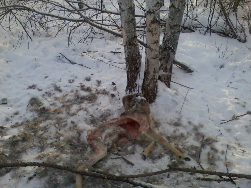 также в старую петлю козлик залез, наткнулся а его уже лисы половину обглодали..........зимой дело было :(