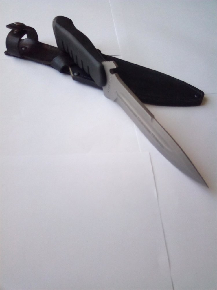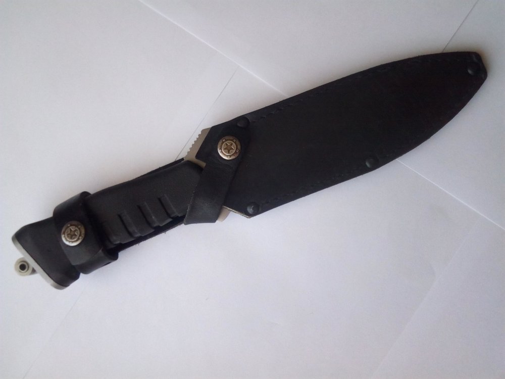 Предлагаю нож Шторм Саро в исполнении МЧС. Первых выпусков ещё номерной и обухом в 5мм!!! От боевого отличается уменьшенной толщиной гарды и все. А он все же стоял на вооружении морской пехоты России о чем есть воспоминания реальных людей. Базовая сталь 65*х*13. длинна клинка до рукоятки 168 мм. Антиблик. Рукоять резинопластик с небольшой кабан ей спинкой, идеальны все виды хватов. Навершение с отверстием под темляк. Состояние отличное без повреждений- царапин. Ножны кожа с возможностью верх, низ , вертикального крепления. Продаю в связи с распродажей коллекции. Цена 3000+ почта 250 руб.