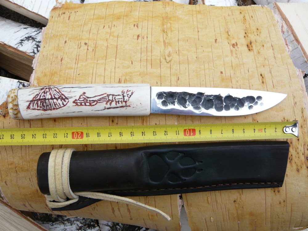 Продам якута рукоять рог изюбря сталь 65г откован зонная калка 13,5/3/2,5 ножны кожа, заточен цена 5 тыс
