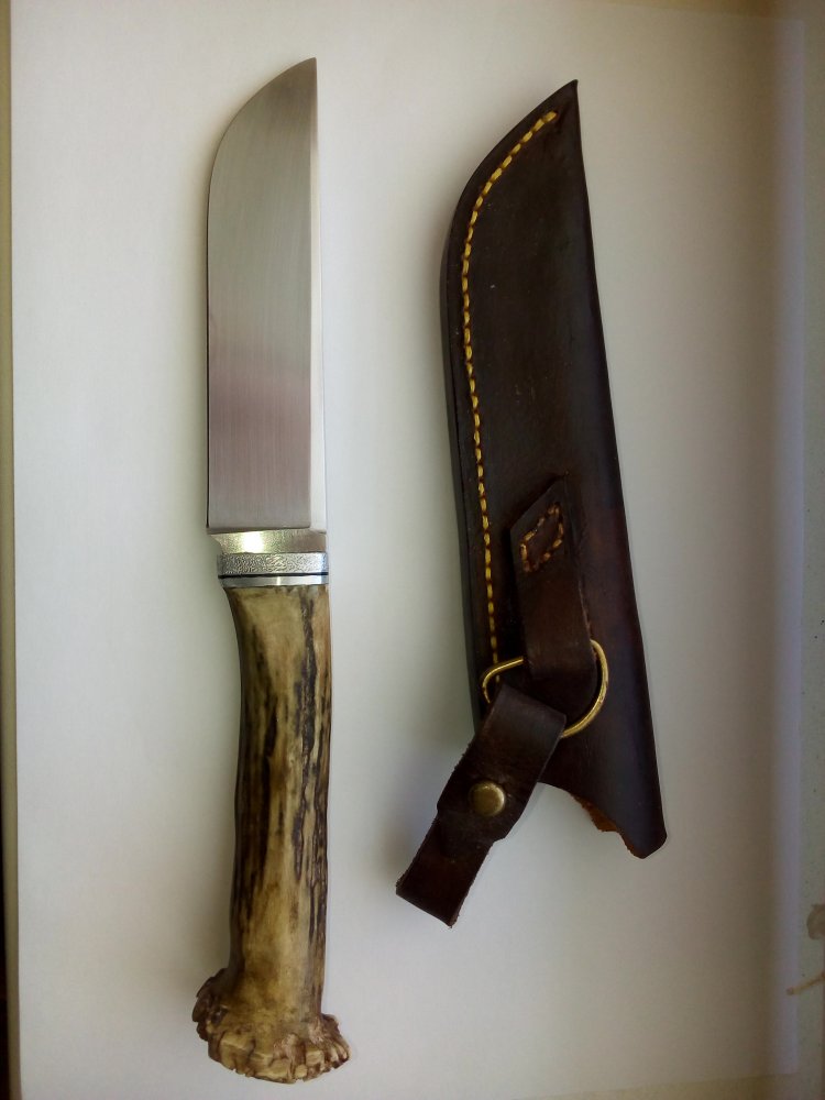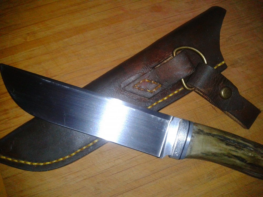 Нож ручной работы ,кованная сталь 95х18 ТО Михаила Батурина сталь не ржавеет и долго держит заточку.Бритвенная заточка. Рукоять из рога косули. Ножны натуральная кожа. клинок 130 х 29 , толщина обуха 4 мм. Покрытие клинка ручной сатин. Твердость по Роквеллу 59 ЕД. 2300руб. Отправка почтой России в любой город.
