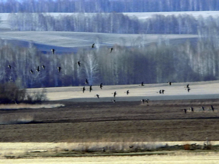 Гусей нынче ещё не видал,а вот утка ещё 3.04 прилетела шилка,крякаш.Сегодня на разливе чирков видал кажись свистунки,далеко было не разглядел.