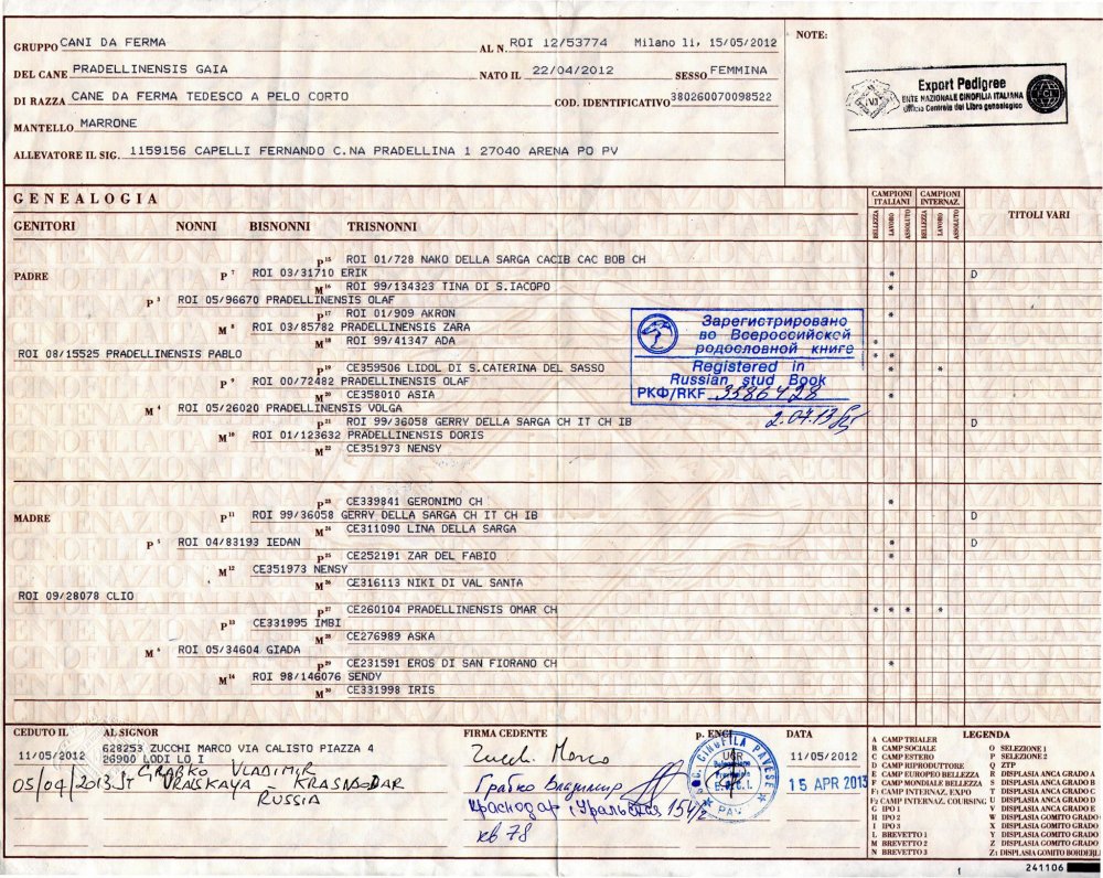 Мать щенка: Полевой Чемпион Pradellinensis Gaia Ее профиль на хантдоге: http://huntdogs.ru/dog_details.php?bc_tovar_id=42936 Но в профиле не отражены ее победы в состязаниях по международным правилам: CACT и CACIT на международных состязаниях по перепелу.