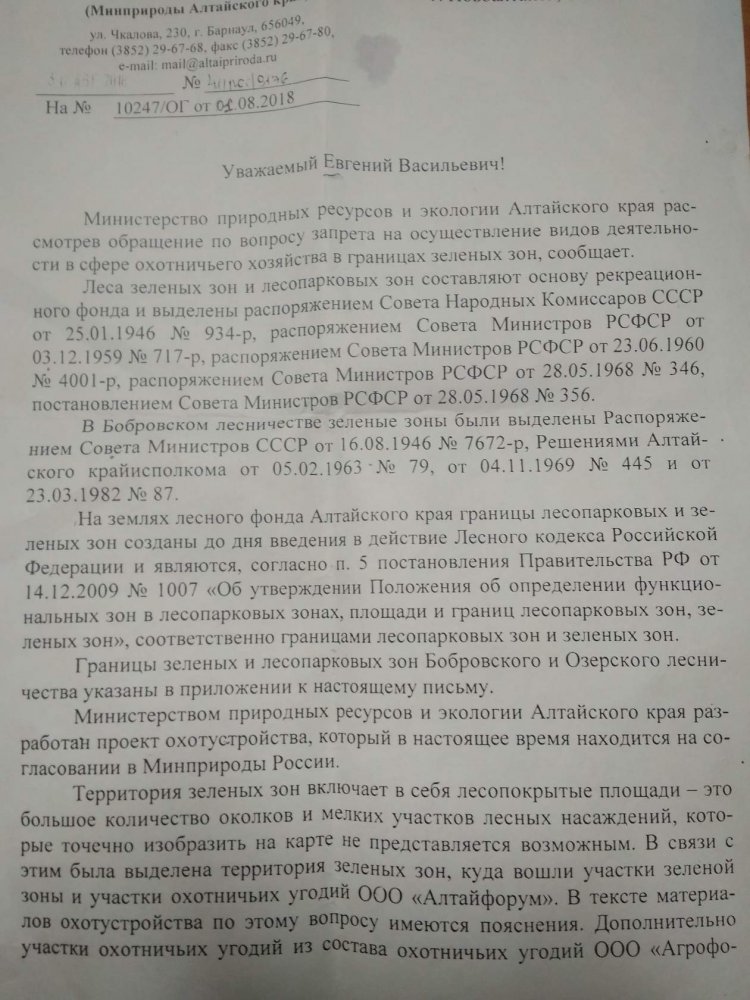 Ответ на письмо-обращение к губернатору по зеленым зонам во вложении. "Мы им про Фому, они нам про Ерему"