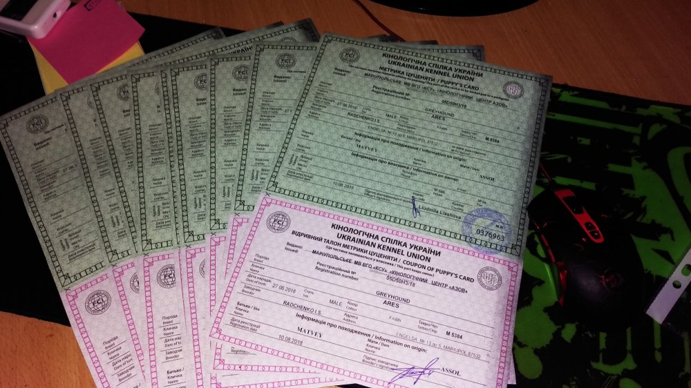 Продаются щенки редкой породы грейхаунд (английская борзая). Дата рождения 27.06.2018. От титулованых рабочих родителей. Мать - ASSOL (г. Мариуполь) серая тигровая (титулы CAC, BOB), Отец - MATVEY(г.Днепр) белый с пятнами (рабочие дипломы). Документы КСУ. Могу дополнительно выслать фотографии/видео или показать щенков в скайпе. Цена на девочек 8 000 грн. мальчики 6 500 грн. Щенки находятся в городе Мариуполе (Украина) в конце августа/начале сентября возможна доставка в Краснодар 10.08.2018 получили документы на малышей. Щенки ищут хороших, добрых, заботливых хозяев. На данный момент доступны 5 девочек и 5 мальчиков По вопросам приобретения звоните или пишите в вайбер: 098 059 1001