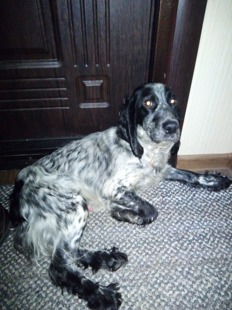 Русский спаниель ищет хозяина.Найден возле Д.Соколова Колыванского р-на.т89232415630