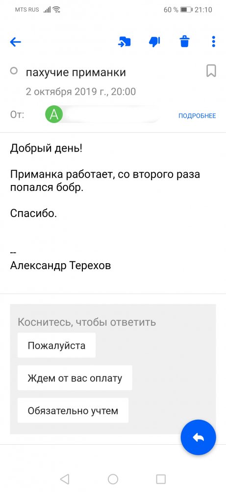 Андрей, спасибо большое за приманку и подарок в виде шкурки. :beer: