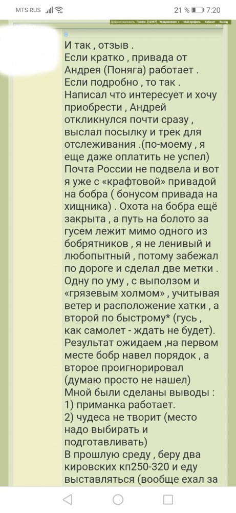 ПУБЛИКУЮ ОТЗЫВЫ ОХОТНИКОВ