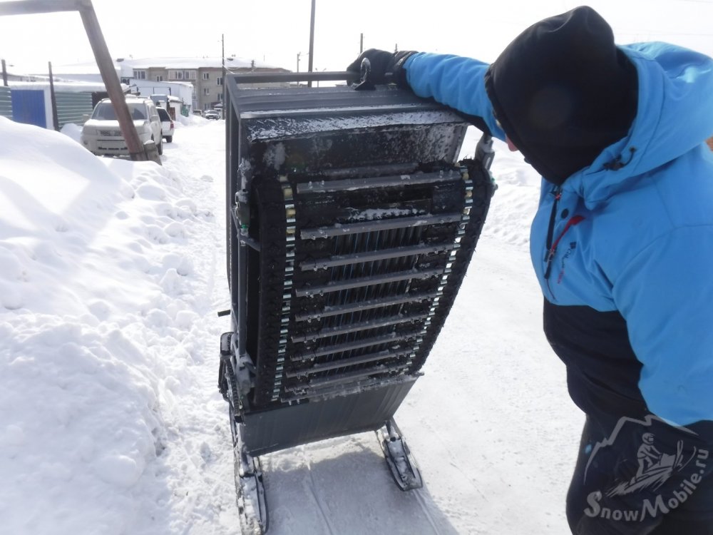 Всем здраствуйте, Опыт эксплуатации, может кому интересно будет: пробег 20 моточасов, один раз возвращал на место выпавшие из паза трубы пнд в гусянке, два раза потерял гайки на лыжах и один раз потерял болт крепления лыжи и лыжу, хорошо болт нашел метров 300 позади, гайку нет, гайки запасные были (сам делал, после первой потери),(не знаю надо их затягивать до дури или нет, закручивал "от руки"). В мороз от -15 и ниже заводился плохо, я стал снимать цепь, стал заводится с 2,3 раза. Один раз двигатель стал чихать черным дымом, и стрелять в выхлопную, потерял мощность думали не доедем до базы, еле тянул. Спасибо Валентину, заехали к нему в мастерскую в Сузуне на обратном пути, продули и отрегулировали карбюратор, теперь сам знаю что крутить, была скорее всего соринка в жиклере холостого хода. Поставил вместо рым гайки бурановскую сцепку. По загрузке-ездим на рыбалку втроем, на фото наш автопоезд, звезда стоит не грузовая, прет киломеров 15 час по ровной дороге, по пересеченной местности медленнее конечно, лес, болота, тросник, река, в горку со льда заезжали втроем 30 градусов, подъем 2-3 метра по высоте. с оби есть подъем затяжной где то градусов 15 заезжали втроем. Бензин лью 95, заливаю только из канистры (мне так удобнее и в машину и в снежик).