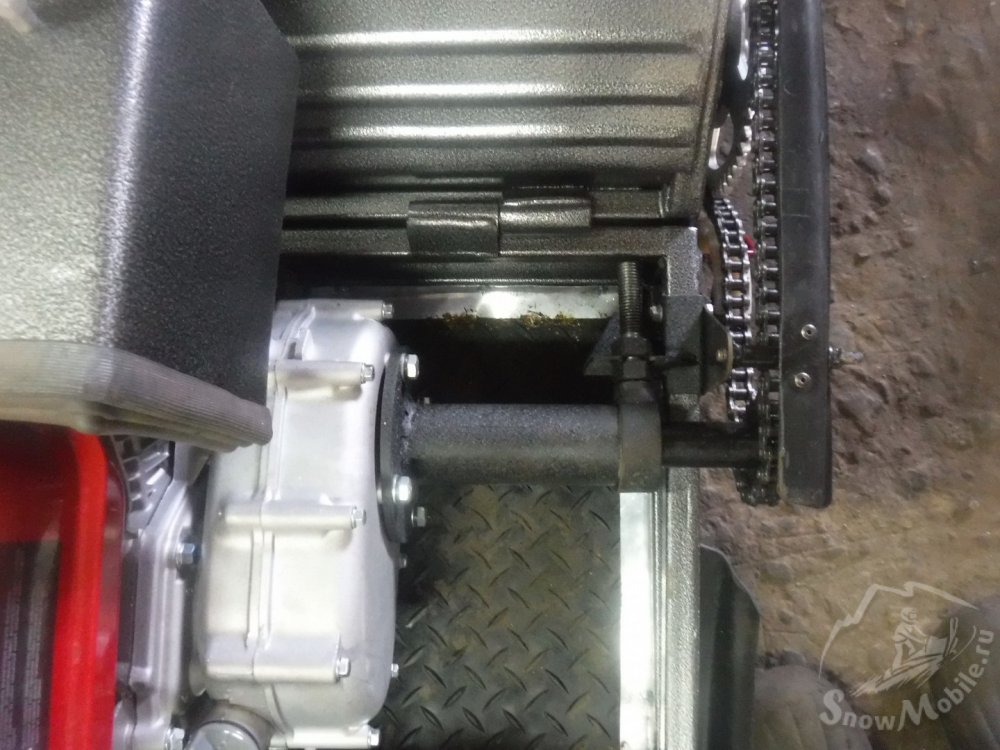 @лопарь, Выхлоп направлен вниз.Теплый воздух от цилиндра и глушителя через щель между сиденьем и кожухом идет в место,которое нам нужно лелеять и беречь:good:. Я на нем посидел,двигатель внизу,не мешает. От редуктора идет удлинительный вал,или как его назвать,в кожухе из трубы. Кожух прикручен к редуктору и дополнительный упор на конце для компенсации момента от цепи. Как-то так... Фотка тоже есть.->