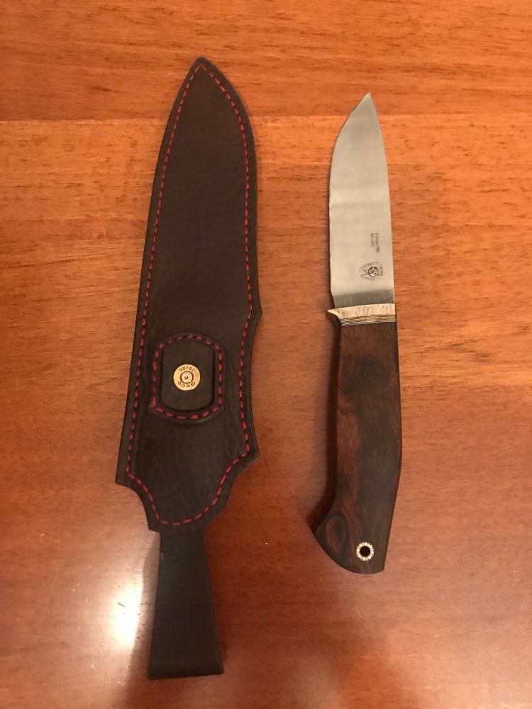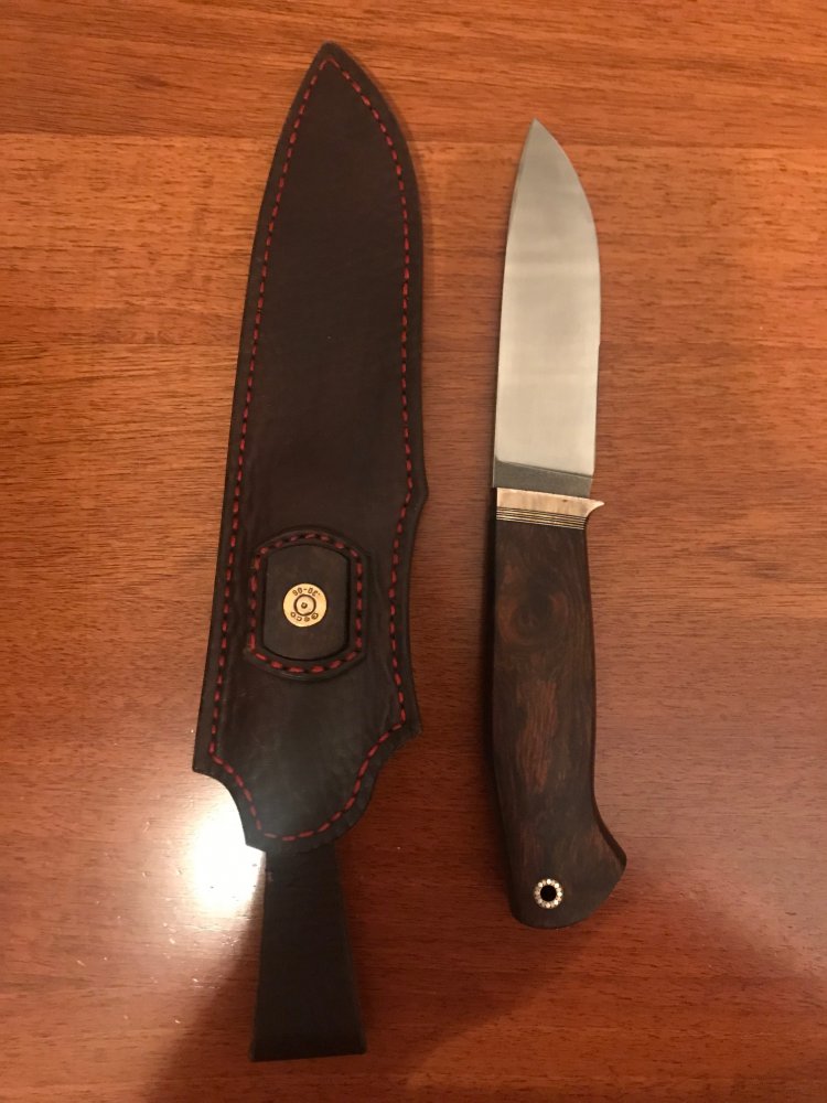 Продам нож Drop point, делался под заказ. Состояние идеальное, ни разу не точил Сталь Elmax PM 62HRC Ручка орех Клинок Сатин Длина лезвия 11,5 см Ширина лезвия 3 мм Толщина 4 мм Спуски от обуха Ножны ручная работа, натуральная кожа 15 тыс. руб.