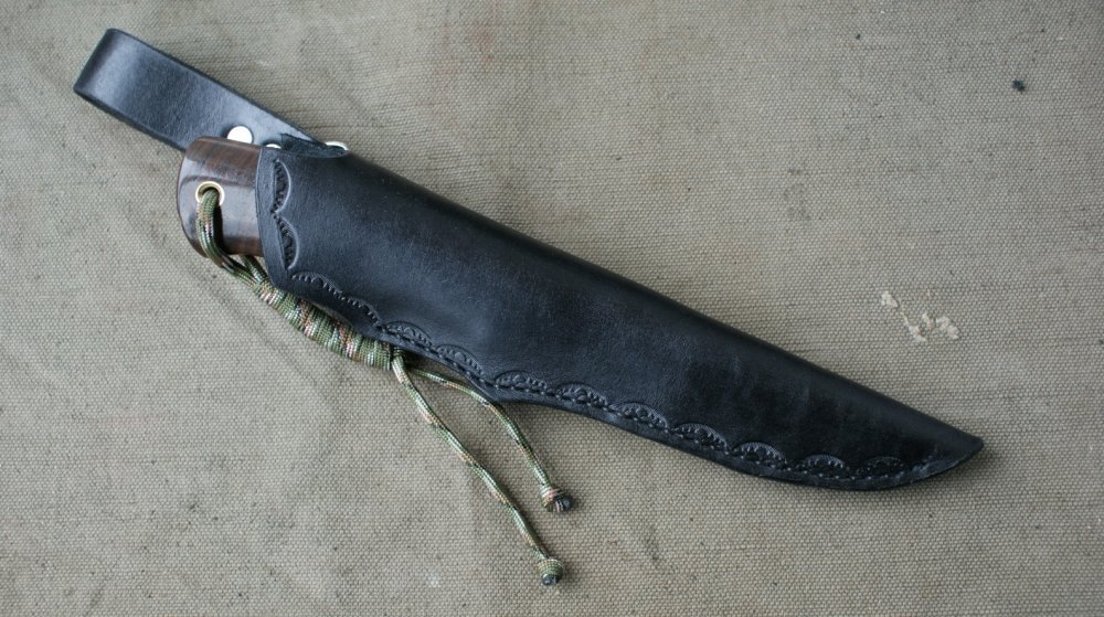 сталь Хромалит,клинок 124х28х4мм Твердость 61-62 Рукоять 120мм,латунь,фибра,орех кавказкий Ножны кожа Цена УШЕЛ