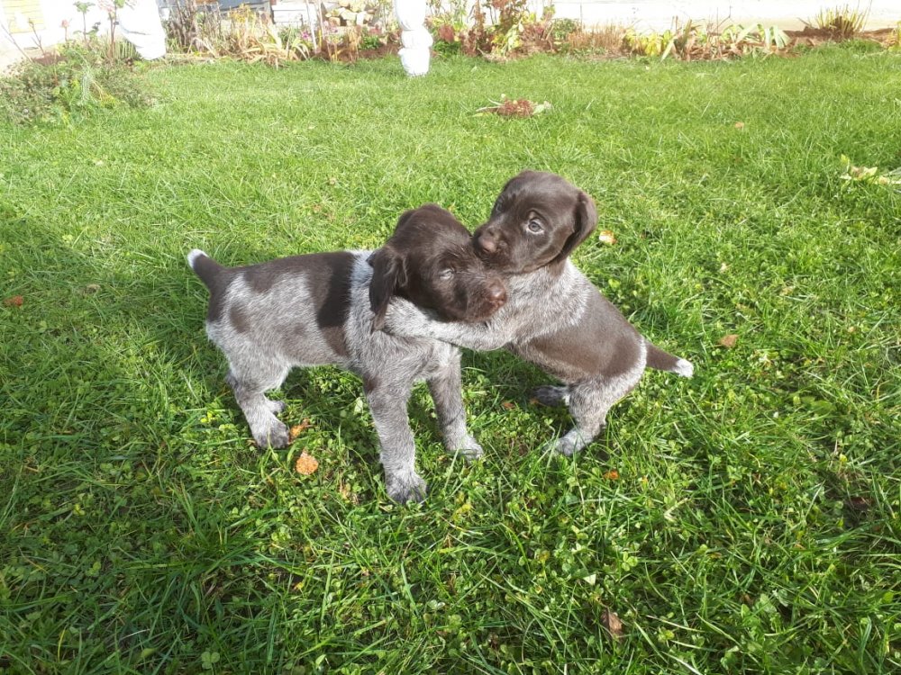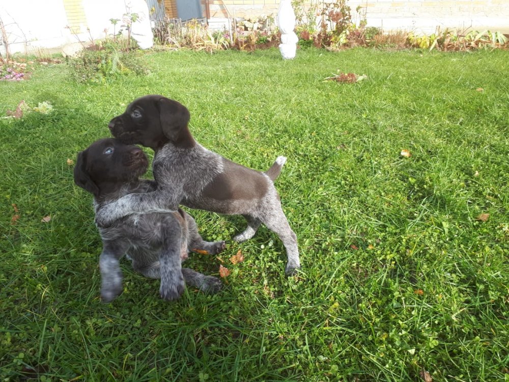 рождены 27.09.2018 кобелей\сук 3\5 свободны 2 суки тел.8 910 528 05 12 Родители щенков Мать Гермиона Пол: Сука (выжловка) Порода: Дратхаар Окрас: кофейный в седине Родитель: сука (выжловка): Дана Родитель: кобель (выжлец): Чарли ф. Вольфсхоф\Charly vom Wolfshof Экстерьер: отл. Дипломы: 3-III б/л,3- III вп, III к, III б/в, III кс 1-III фаз Дата рождения: 17.12.2012 Номер ВПКОС: 4947/14 Дата записи во ВПКОС: 27.11.2014 № Свидетельства на охотничью собаку: 484-0012жл Дата выдачи «Свидетельства на охотничью собаку»: 19.01.2013 № Справки о происхождении: 4822-13/0001-4жл № клейма: РТВ 3654 Отец Грэм Кличка: Грэм Пол: Кобель (выжлец) Порода: Дратхаар Окрас: коричнево-пегий Родитель: сука (выжловка): Анта Родитель: кобель (выжлец): Гриф Экстерьер: отл. Дипломы: I вп, II б/л, III пер Дата рождения: 22.04.2013 Номер ВПКОС: 5017/15 Дата записи во ВПКОС: 31.03.2015 № Свидетельства на охотничью собаку: 4912-0027/жл Дата выдачи «Свидетельства на охотничью собаку»: 03.04.2014 № Справки о происхождении: дд 2087 № клейма: ROA 2087