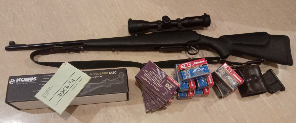 Продам комплект: 1. Карабин Лось 7-1 2004 г.в, настрел не большой, ложе пластик "от Дмитрия", 2 магазина, дефектов нет, куча в пределах охотничьих требований. 2. На карабине установлена планка Вивер от Старого (это увереннее, чем ЭСТ). 3. Низкие кольца Contessa SPP02/B, Italy, новые 4. Прицел Konus Pro M30 1.5-6х44 MM, новый, не пристрелян, труба 30мм, сетка дуплекс с подсвеченной точкой гравирована во второй фокальной, очень светлый, картинка уровня Nikon Monarch 7 (сравнивал при разной освещенности). 5. Семки: несколько пачек Кентавра 180гр и обычного Баранула, немножко Сако. Довеском отдам чехол, погон, шомпол. В общем купил и готов ко всему, на что способен патрон и стрелок, ибо свои целевые функции комплект выполняет на 5+ )) Дзынь-дзынь 9139218445 Алексей. Здесь бываю редко, так что лучше звоните. Хочу за все 40т.р.