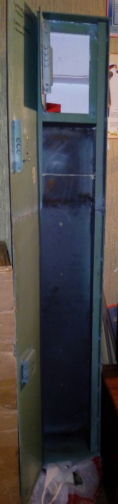 Сейф высотой 160 см. Глубина 18 см. Ширина 25 см. Высота для ружей 129 см. 2 замка в двери. 1 замок на ящичке под патроны. ЦЕНА- 3000 р.