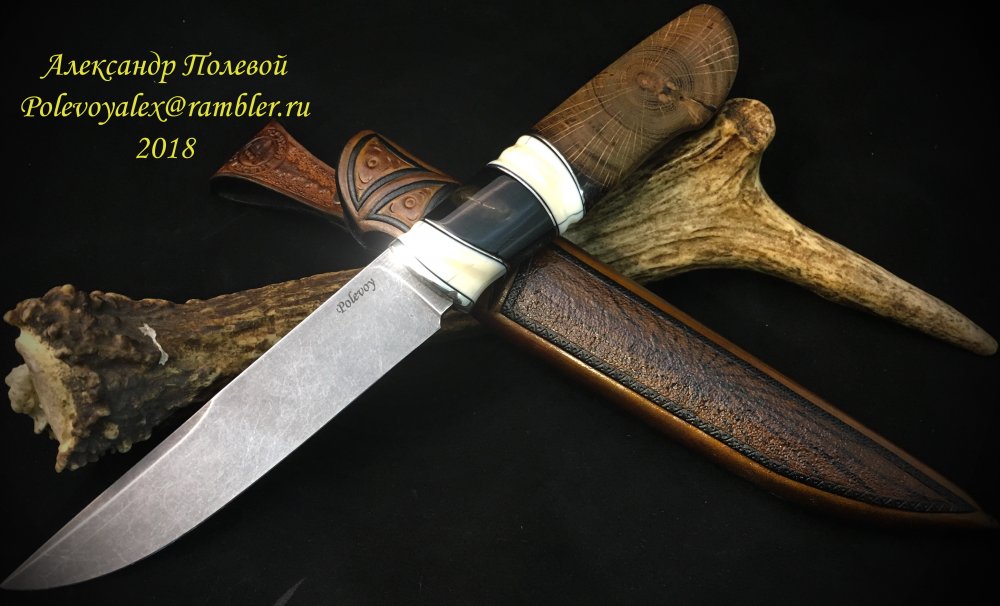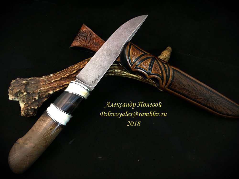 Продам нож собственного изготовления! Сталь СPM 3v ТО Алана Баликоева. Рукоять - клык моржа, рог буйвола, стабилизированный дуб! нож новый! Цена 30 т.р.