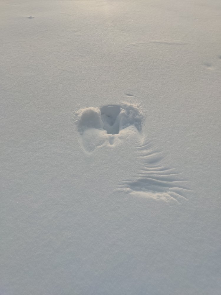 А что тогда это? Их было много на расстоянии примерно 10 м вдоль берёз. На одном даже лира от хвоста отпечаталась ( не заснял) и помёт внутри был. Это точно не сова!