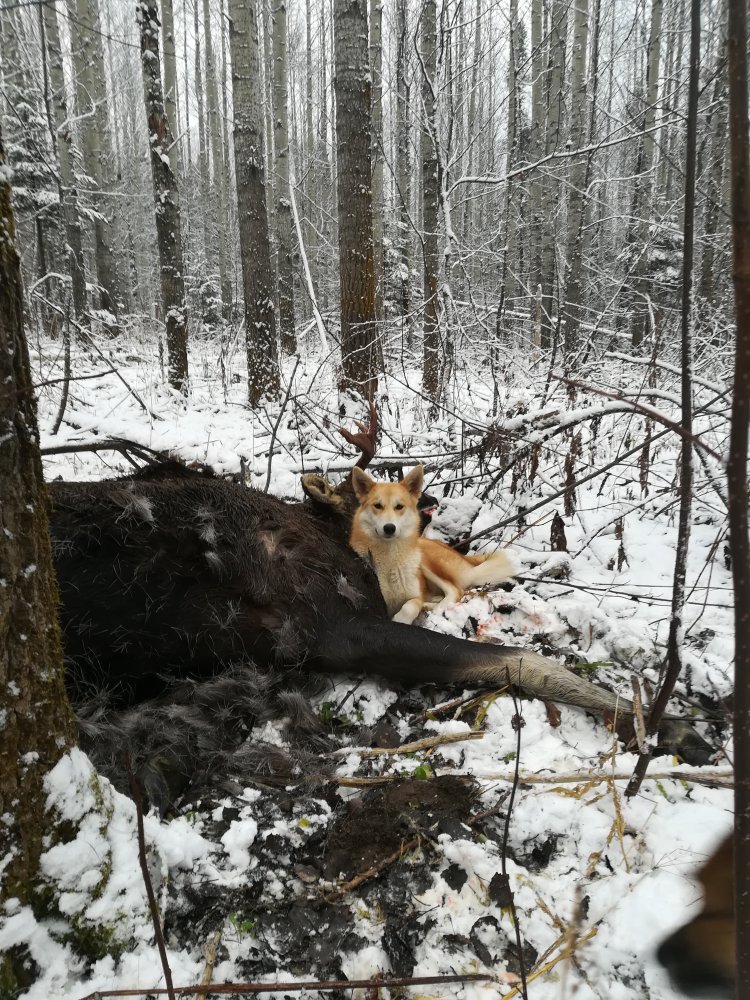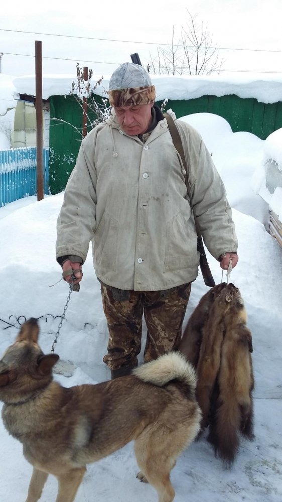 Ветка- сука 25.02.17 среднего роста в мл гр имеет оч хор., с 8 мес начала работать по барсуку, с 10 мес по соболю, в команде работала по лосю, медведя не боится, основной объект нашей охоты соболь. С хорошим поиском и возвратом.
