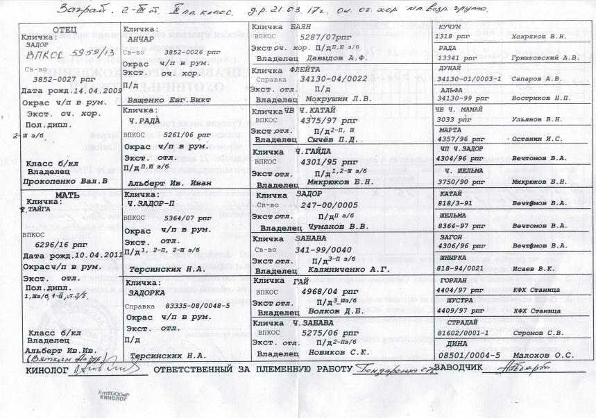 13.02.19 Состоялась плановая вязка РПГ Вьюга вл. Венгловский И.А ( ВПКСО 6727/18. д.р.5.02.16. дип.1-2ст. 1-3ст.з/б. Эк.оч.хор. 1 плем.класс.) + РПГ Заграй вл.Альберт И.И(ВПКСО 6749/18 .д.р.21.03.17 .дип.2-3ст.з/б. Экс.оч.хор. 2 плем.класс). Происхождение РПГ Вьюга (Решка вл.Изотов М + пч Звон вл.Ковалев. А .РПГ Заграй (Задор вл.Прокопенко В + ч Тайга вл.Альберт И.И)Запись на щенков 89095159700 ( в Whats App тот же номер) на сайте нахожусь мало ,звоните или пишите в Whats App