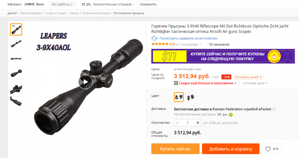 LEAPERS 3-9х40 со скидкой на алике. Брать или нет?