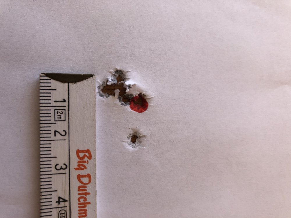 Вместе с SK Биатлон стрельнул ещё и GECO Rifle. Он всегда показывал хорошие результаты, ну и тут не подвёл. Вот такая группа получилась. Температура +15. Скорость 320 м/с. Кто скажет сколько тут выстрелов в этой мишени?