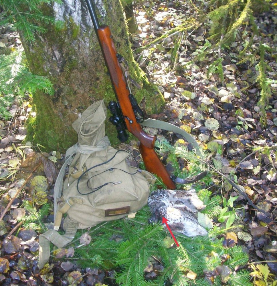 Ме-е-едленно опускаюсь на правое колено, опираюсь левым локтем на левое колено, создав упор для карабина - стрелять из 5-килограммовой фузеи на весу - это гарантированно промахнуться. Вожу перекрестьем по рябчику и думаю - надо, чтобы грудка осталось целой и ножки тоже. В башку могу не попасть, значит надо стрелять по кишкам, заодно и выпотрошу. Опыт такой, но по зайцам в таймырской тундре, имелся - никуда рябчик не денется. Двух не возьму, но один-то точно в супчик пойдёт... Навожу на брюшко... Спокойствие, только спокойствие... БАХ!... И что это!? Рябчик с отстреленной жёппой и вынесенными кишками взлетает и планирует с дороги вниз по 45-градусному склону между деревьев к заросшему кустарником в человеческий рост ручью, да в такие непролазные джунгли, что я даже не заметил куда он пропал. Второй конечно же улетел.... Ну, что тут сказать... Я вспомнил все ругательства, которым научился ещё в детском садике в рабочем посёлке, в котором мы тогда жили. Нету рябчика! Не будет супчика! Остыл, рассмеялся, да потопал дальше.... Чего только на охоте не бывает.