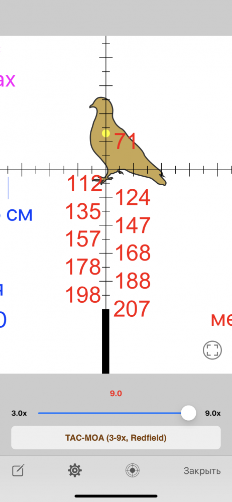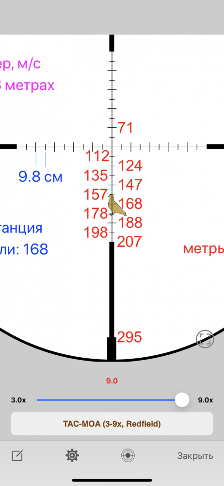 У меня прицел HAWKE 4х9-40 SUBSONIK на МАНУЛЕ стоит, цифры в прицеле есть, крестики с подсветкой красной или зелёной с регулировкой яркости, пристрелял Олимп-В, при 7,9 крат метры совпадают. Читайте обзор этих прицелов.