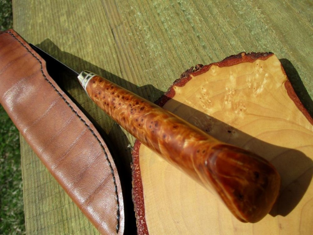 .Н690.Термичка Бурчитая..В обухе-2,7.Длина клина по обуху-85мм.Длина ручки-125мм.Сведён в 0.3,фальш-0.7.НЕ ТОЧЕН.Бярозовый кап-больше похожий на сувель.Латунь,фибра.Ножны сделанны из одного куска кожи,искуственное старение,деревянный вкладыш.Цена-4000 с моей отправкой DSC08107.JPG DSC08108.JPG DSC08113.JPG DSC08116.JPG DSC08119.JPG DSC08121.JPG DSC08127.JPG
