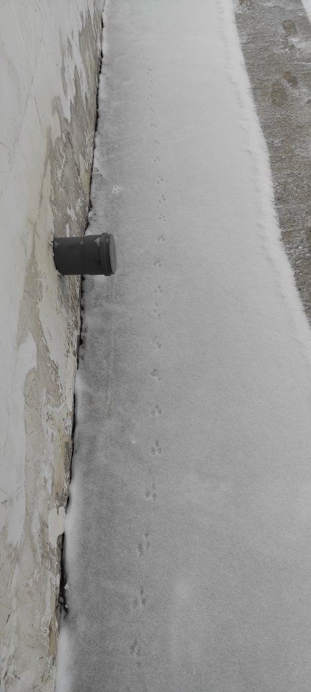 Лёнь, крупноват для мыши. На фотке канализационная труба сотка торчит. След на её фоне... Наоборот мне кажется-либо крупная крыса, либо куньи. Хотя откуда им взяться в центре Барышево!!!
