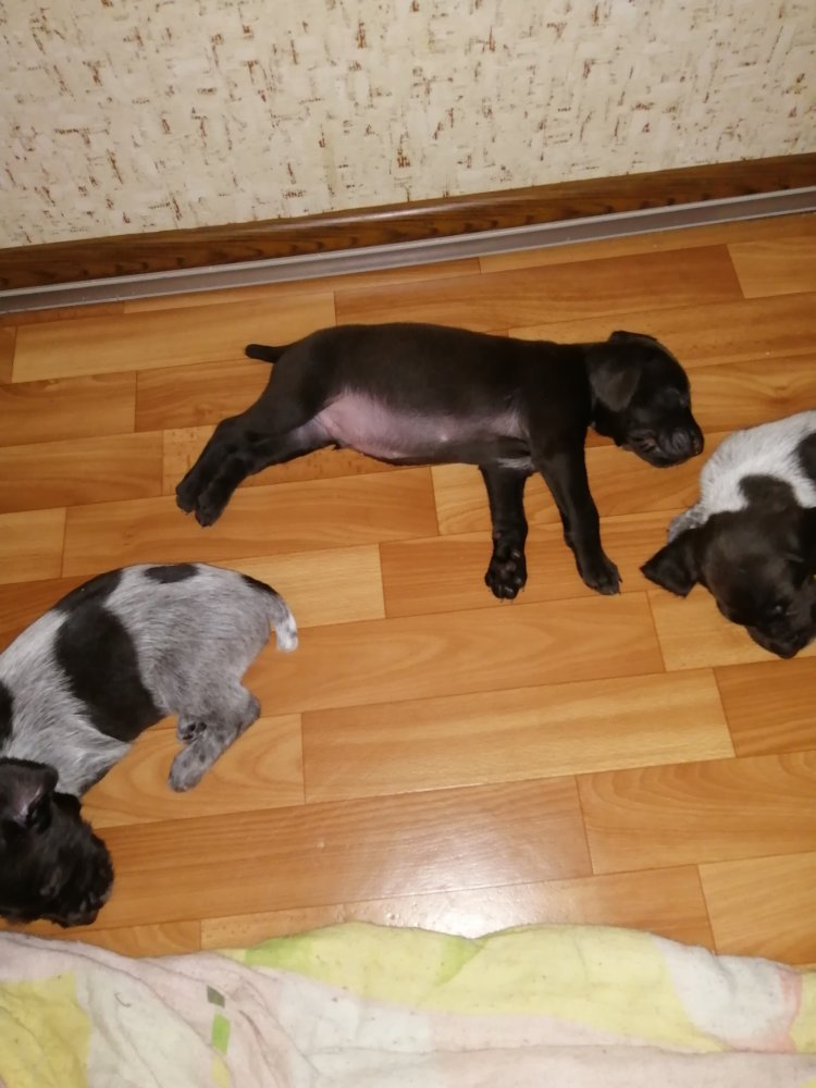 Осталось 5 щенков, 2 пацана и 3 девки. Пацаны коричневые, девки рябые. Документов нет. Родились 29.05.2019г. Родители рабочие. Цена 5тр. 9133808144