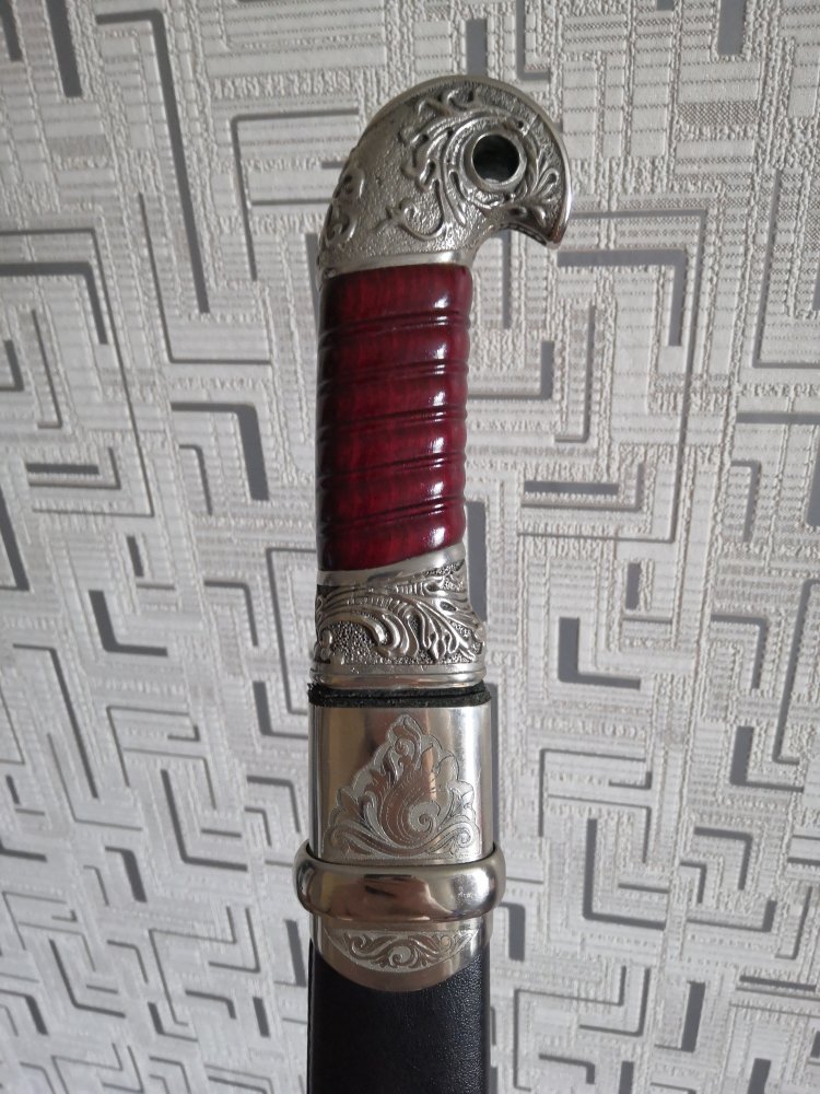 Это настоящая Шашка) для рубки подходит, дополнительно закалена, сам клинок- сталь конструкционная рессорно-пружинная сталь 60С2А. Мельхиор это элементы остальные, для красоты.