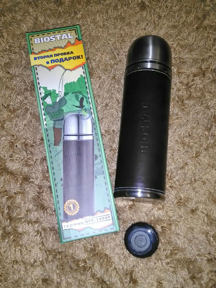 Новый. Удобно использовать на охоте, рыбалке или в путешествиях. Диаметр - 8.9 см. Высота - 36.5 см. Вес - 780 г. Объем - 1л. Материал - нержавеющая сталь. Корпус покрыт брендированной вставкой из коричневой искусственной кожи. Сохраняет температуру напитка до 19 часов. В комплект входит 2 пробки: отвинчивающаяся и с кнопкой. Цена 1300 рублей. 8-913-7272-666