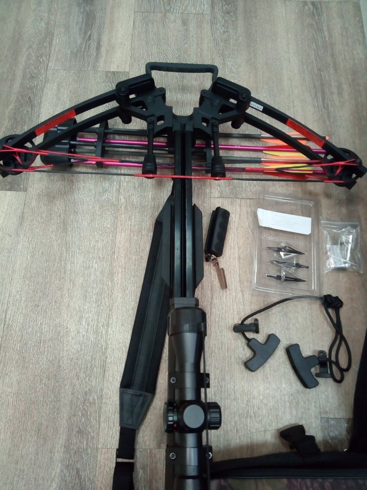 Такие вещи нужно описывать подробно, если конечно имеете цель продать.... Например что за оптика, какие плечи, тетива, что за стрелы и какие наконечники имеете.... Даже чем тетиву обрабатывали и то важно...