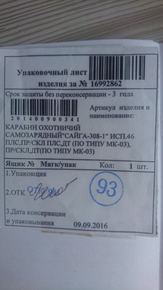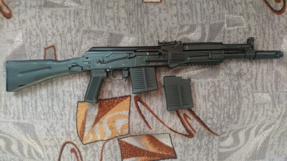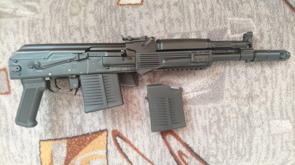 Карабин Сайга 308-1 исп. 46 – это самозарядный охотничий карабин, предназначенный для работы в любых климатических и температурных условиях. Цевье и приклад изготовлены из ударопрочной пластмассы, канал ствола и патронник – из хромированной стали. Общая длина винтовки Сайга 308-1 составляет 985 мм, длина ствола у Сайга 308 1 – 350 мм, вес – не более 3.9 кг. Горизонтальный поперечник рассеивания на стометровую дистанцию составляет не более 100 мм. Открытый прицел состоит из мушки, положение которой можно отрегулировать в двух плоскостях, и прицельной планки. Имеется возможность установки оптических прицельных приспособлений. Практически новый, настрел 30-50 патронов, в комплекте 2 магазина и чехол. Переоформление согласно закону РФ. Осмотр при наличии лицензии. Курганская область, р-п Каргаполье. Стоимость 25 500р торг. Телефон: 8-900-383-09-89