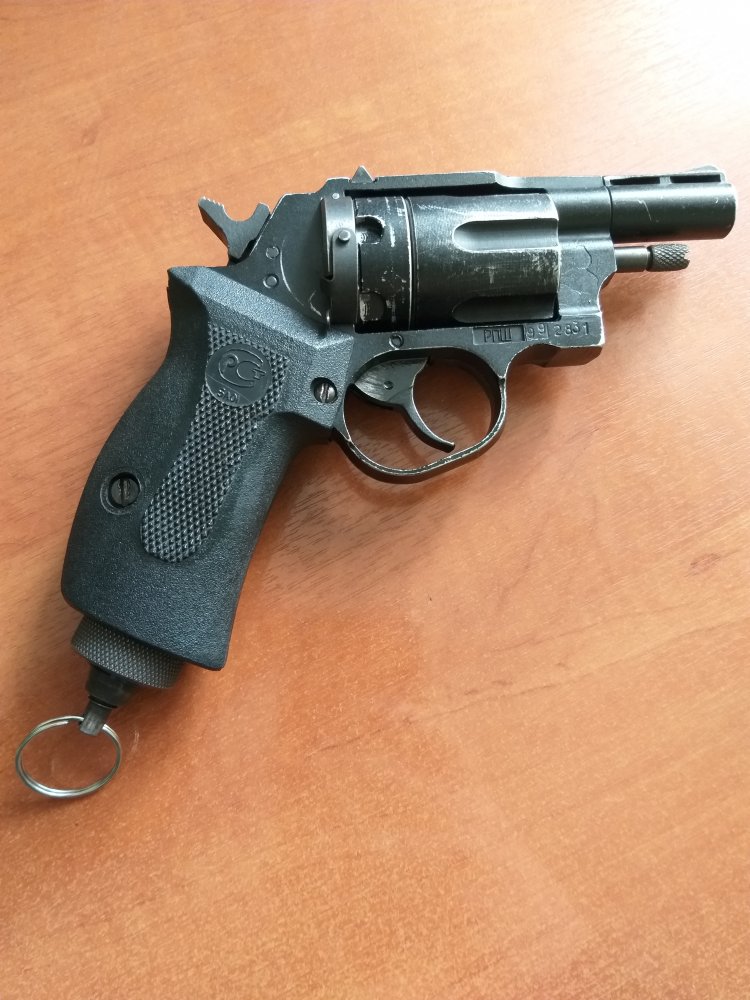 Продам пневматический револьвер РПШ, 1999г, в рабочем состоянии. Есть потертости, барабан стальной. Не много травит газ, маленького баллона хватает на 4 барабана. В комплекте только револьвер. Доставка обсуждается отдельно.