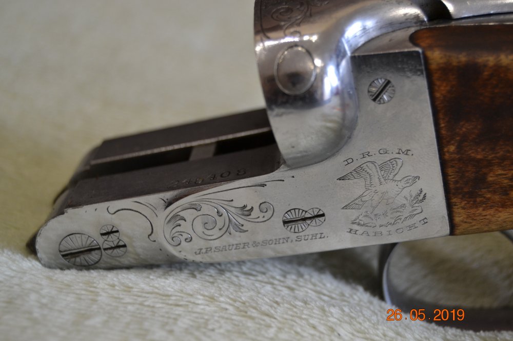 Добрый день! Помогите пожалуйста больше узнать о ружье и определить хотя бы примерную его стоимость. Ружье осталось по наследству, папа им гордился, оно было привезено в военные годы из Германии, хорошо себя проявляло на охоте. Покопавшись в документах и интернете я выяснила следующее: 1. Производитель: "Зауэр и сыновья" г.Зуль, «Ястреб» (гравировка), модель не знаю? 2. Дата изготовления (испытаний)- 27.03.1927 г. 3. Калибр 12, гладкоствольное 4. Круповская сталь (три кольца) 5.Есть клеймо «мужика с дубиной» (голова которого повернута влево, что говорит о том, что это один из первых фирменных знаков) 6. Стволы (по клеймам) испытывались нитро порохом, после чего еще раз проходили контроль: -слева: ствол гладкий, цилиндрический -справа: ствол с чоком (наличие дульного сужения- 13/1). Уменьшенный диаметр ствола, но в пределах допустимых правил (ПМК). ФОТО прикладываю