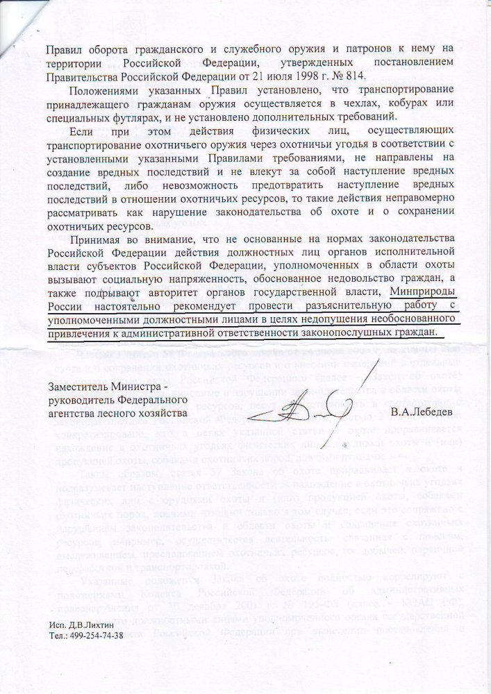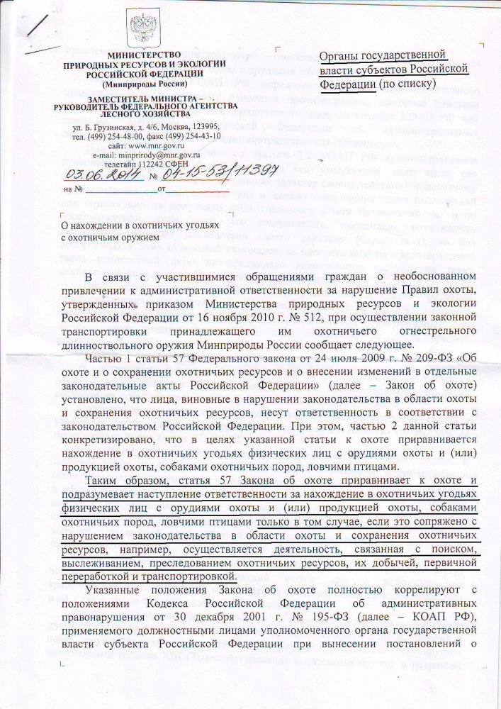 вот памятуя о палкорубах я и припомнил то письмо Минприроды от 2014 года. Почему его никто не вспоминает? там же четко разъяснено что есть незаконная охота, что есть транспортировка. Там даже указано что если нет признаков охоты (выслеживание, преследование, разделка продукции, еще что-то), то хоть в руках носи по угодьям, естественно с соблюдением требований транспортировки, указанных в законе об оружии