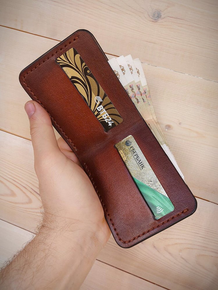 Очередной классический портмоне из кожи растительного дубления с инициалами владельца!