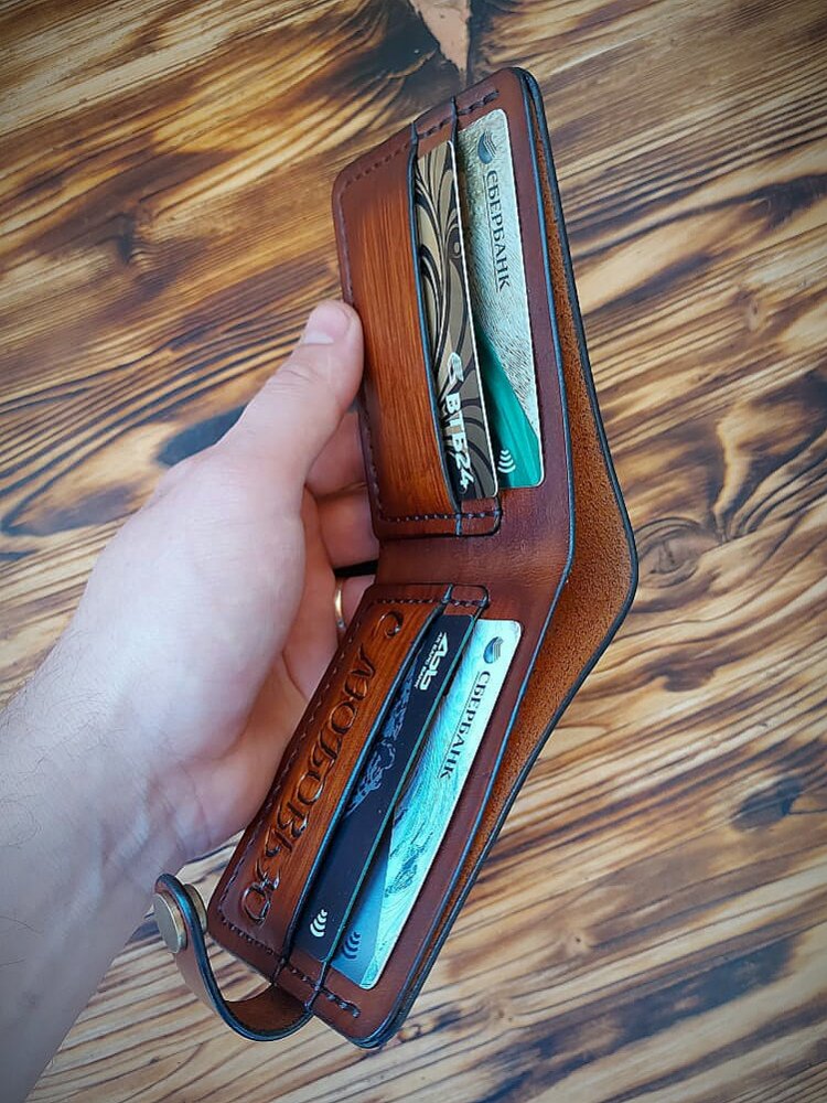 Портмоне из кожи растительного дубления с элементами тиснения!