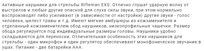 Продаю новые активные наушники. В упаковке. Понижение звука на 20 Дб. Один микрофон и регулятор на оба уха. В упаковке. Активные наушники отлично глушат ударную волну от выстрелов и любые другие опасной для слуха силы звуки, при этом нормально воспроизводят либо усиливают (в зависимости от настройки) другие звуки - голос человека, шелест травы и т.д. Имеют мягкие амбушюры из кожзаменителя и отделанный кожзаменителем обод наушников, низкопрофильные чашечки. Размер обода регулируется под индивидуальные размеры головы. Наушники удобно складываются для переноски. Отличительная особенность этих наушников - один микрофон и один регулятор обеспечивают монофоническое звучание в ушах. Питание - две батарейки ААA. Цена 2300. Могу переслать. Александр. 8-960-959-0100.