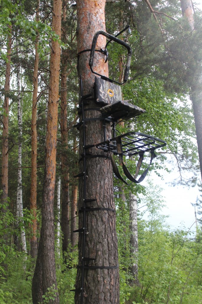 Мы пользуемся когтями электрика. В местах, где охотимся регулярно, набиваем лесенки между двух деревьев. Чем выше сел, тем меньше зверь тебя чует. 7-8 метров обычно садимся.