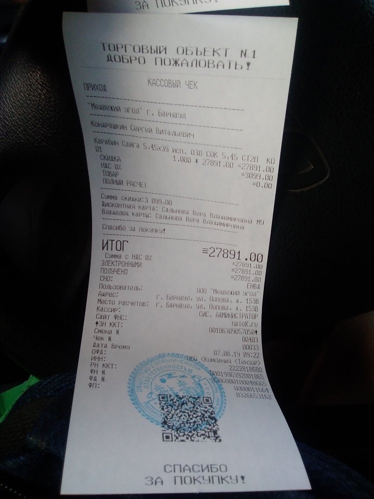 САЙГА 33 990 руб месяц ждать , ВОМЗ Р1х42 6190р , Кронштейн "КОЧЕВНИК 3" 3000р . ИТОГО 43180 руб. у меня цена , если вы не заметили 29000р -32% Что не так то было ) ?