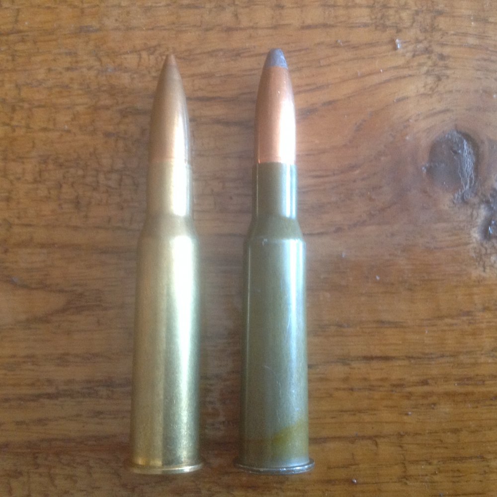 Почему это не рассказывать на чём испытал? Делитесь, лося можно заменить на домашнюю говядину из стайки На счёт проблемы подачи полуоболочки, то наблюдал небольшое заминание при медленном досыле патрона в патронник. Если совсем медленно чтобы беззвучно, то может и на перекос стать и не закрыть затвор, особенно этим болеют "иностранцы". Если затвор отвёл и отпустил и он сам досылает патрон и закрывается, то "влетают" все нормально. При стрельбе и автоматической подаче патрона проблем не замечено ни разу. Вот как пример высота импорта и нашей барнаульской п/о Крайний слева Norma с пулей 11,7; потом чешская S&B тоже п/о 11,7; барнаульская п/о 13,2 и чешская оболочка S&B 11,7. В миллиметрах не мерил, но даже на фото визуально видно, что импорт на несколько миллиметров ниже нашего боеприпаса. Даже их оболочка не больше нашей п/о