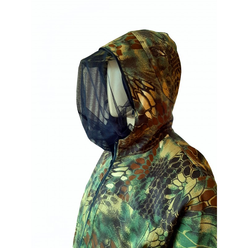 Сшили партию камуфлированных костюмов с антимоскитной сеткой. Сетка складывается в потайной корман в капюшоне и без лишних отстегиваний легко откидывается, если необходимо покурить или попить чаю. В конструкцию капюшона входит жесткий козырек, позволяющий сетке не висеть на лице. Костюм сшит из ткани с водоотталкивающими свойствами и прошит прочными, армированными нитками. Подробности здесь: